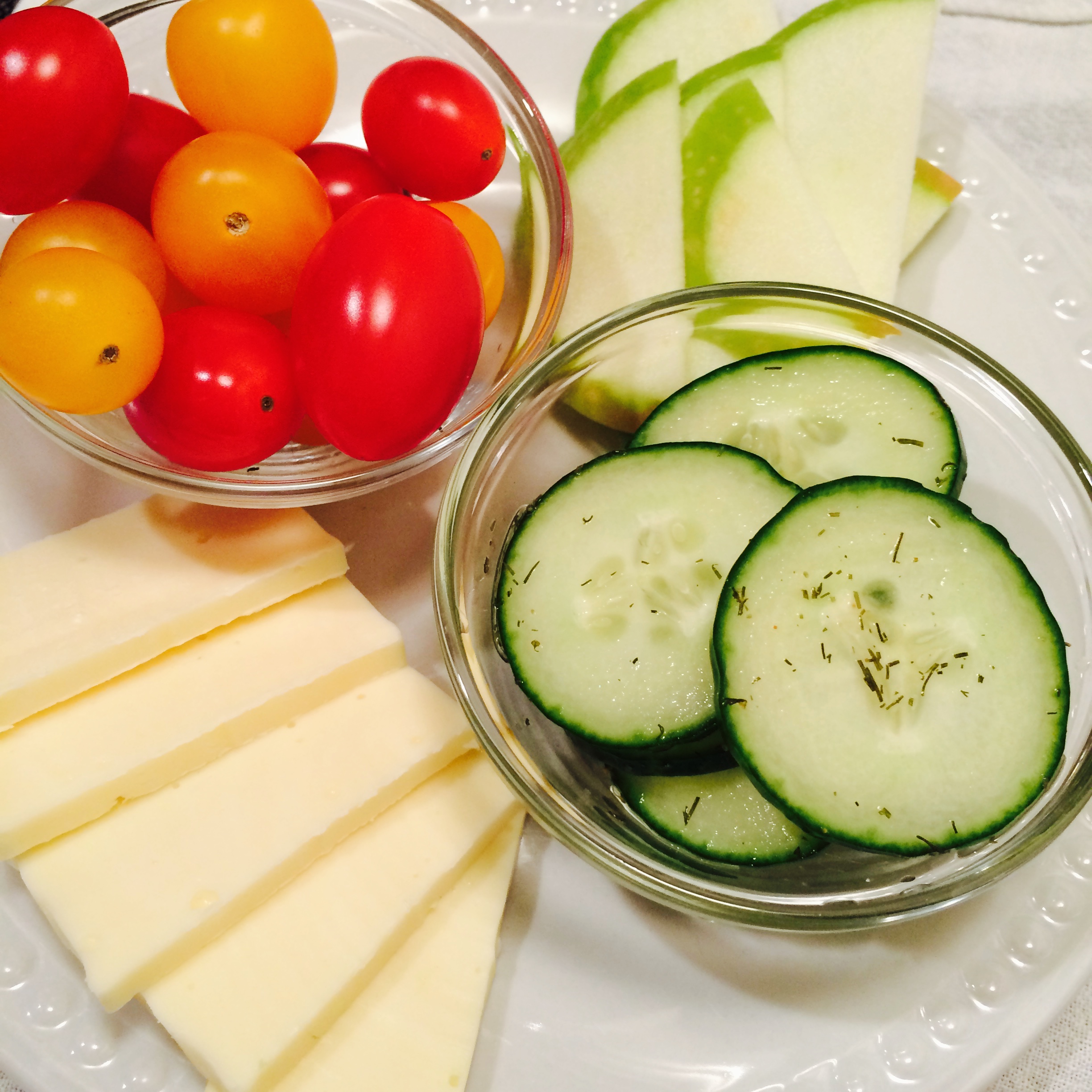 Add all the ingredients into a bowl with a lid, secure and give a good shake. Put in the fridge and let them go! I would give them at least 2 hours before serving to give them a chance to pick up some tartness and get chilly. They will only get more pickled with time, so get ready to pucker up the next day! I sometimes make a little “farm plate” for lunch with the fresh pickles, some grape tomatoes, sliced apple and any type of Vermont cheese I have knocking around (the kind below happens to be Cabot Horseradish cheese).